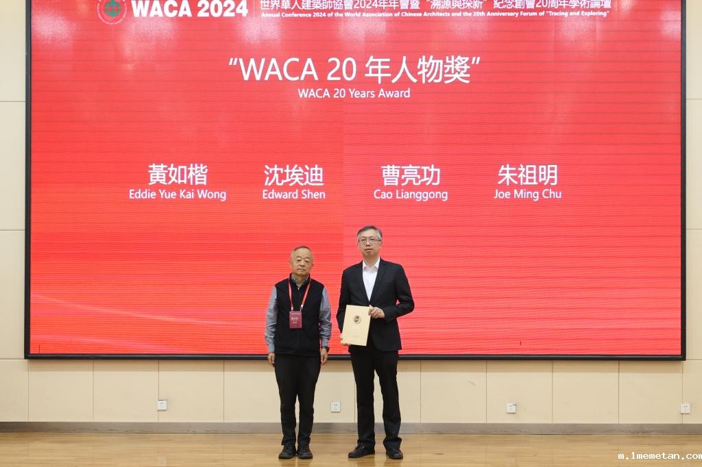 揭幕仪式后,由会长张伶伶为黄如楷、沈埃迪、曹亮功、朱祖明颁发“WACA 20 年人物奖”奖牌,并发布“世界华人建筑师学报&创会20 周年纪念册”。