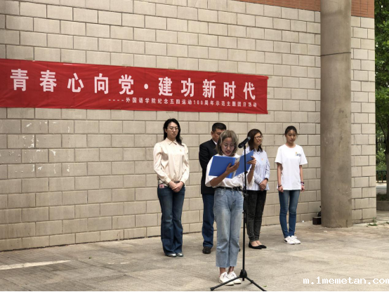 5月5日下午,外国语学院在外文楼前开展“青春心向党•建功新时代”——纪念五四运动100周年示范主题团日活动。老团干优秀代表、外国语学院党委书记李杰瑞,学院团委书记臧蓉蓉、辅导员刘玥及2018年新发展团员、团员青年代表60余人参加活动。活动由学院学生会主席周广军主持。