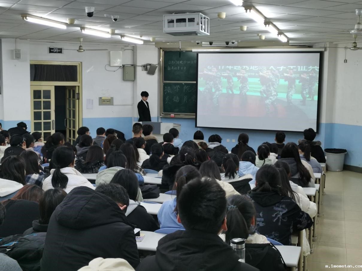 12月17日晚,法学院在博文楼召开2021年征兵动员大会。学校武装部征兵宣讲团、团学科辅导员、退伍军人代表法学193班田以上同学及2019级男生、2020级全体同学参加了此次大会。
